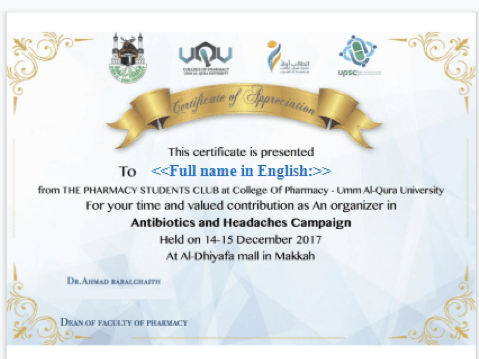 ٤-   نختار الشهادة المخصصة للفعالية اللي جهزناها من from drive